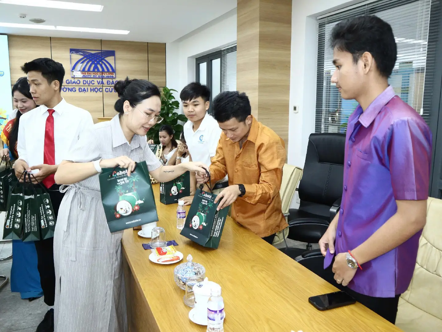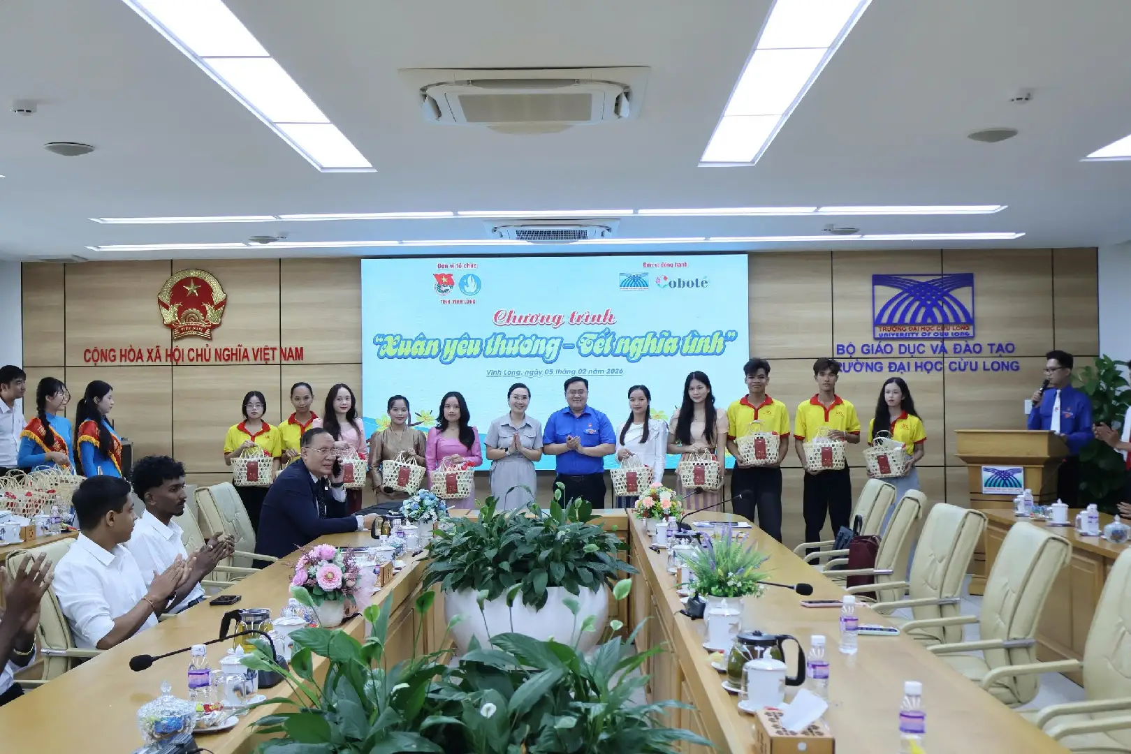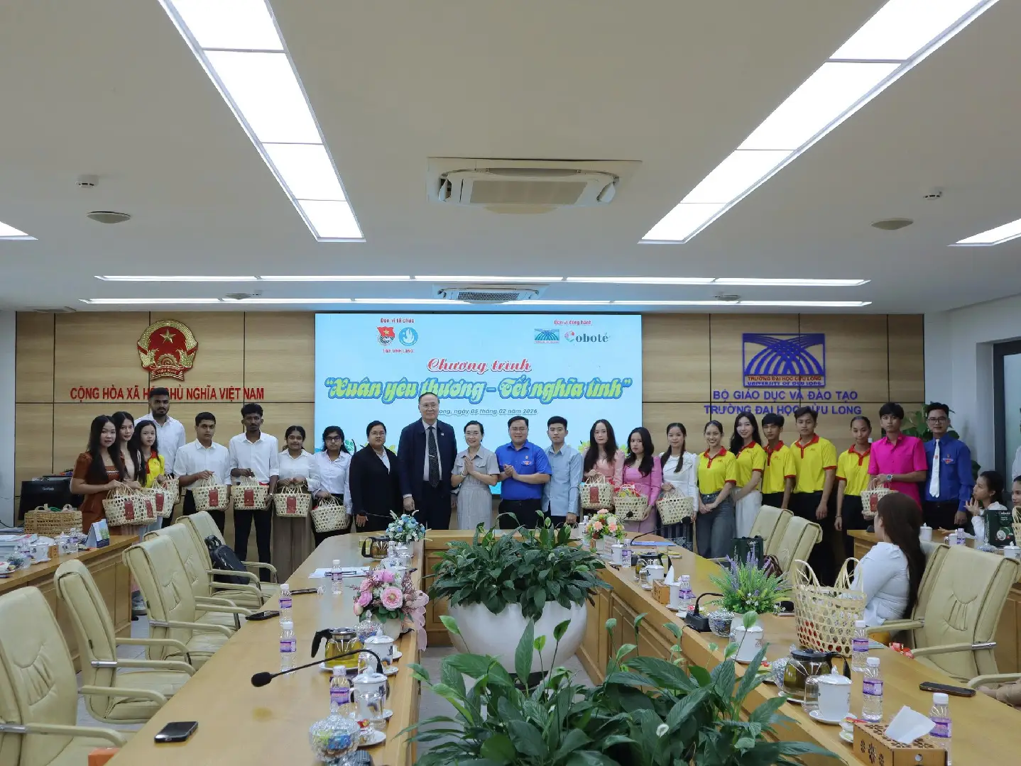 Góp sức cùng tổ chức Đoàn - Hội tỉnh và Ban giám hiệu Trường Đại học Cửu Long, Công ty Cổ phần Phát triển Thực mỹ phẩm VFARM – Thương hiệu Coboté trao tặng 40 phần quà Tết cho lưu học sinh Lào, Campuchia, Ấn Độ và sinh viên dân tộc Khmer đang học tập tại trường. Những món quà nhỏ mang đậm phong vị quê hương cùng với bộ sản phẩm mỹ phẩm từ dừa được trao gửi như là lời chúc tốt đẹp của Coboté dành tặng cho các bạn sinh viên quốc tế, sinh viên người dân tộc nhân dịp đầu năm mới.
