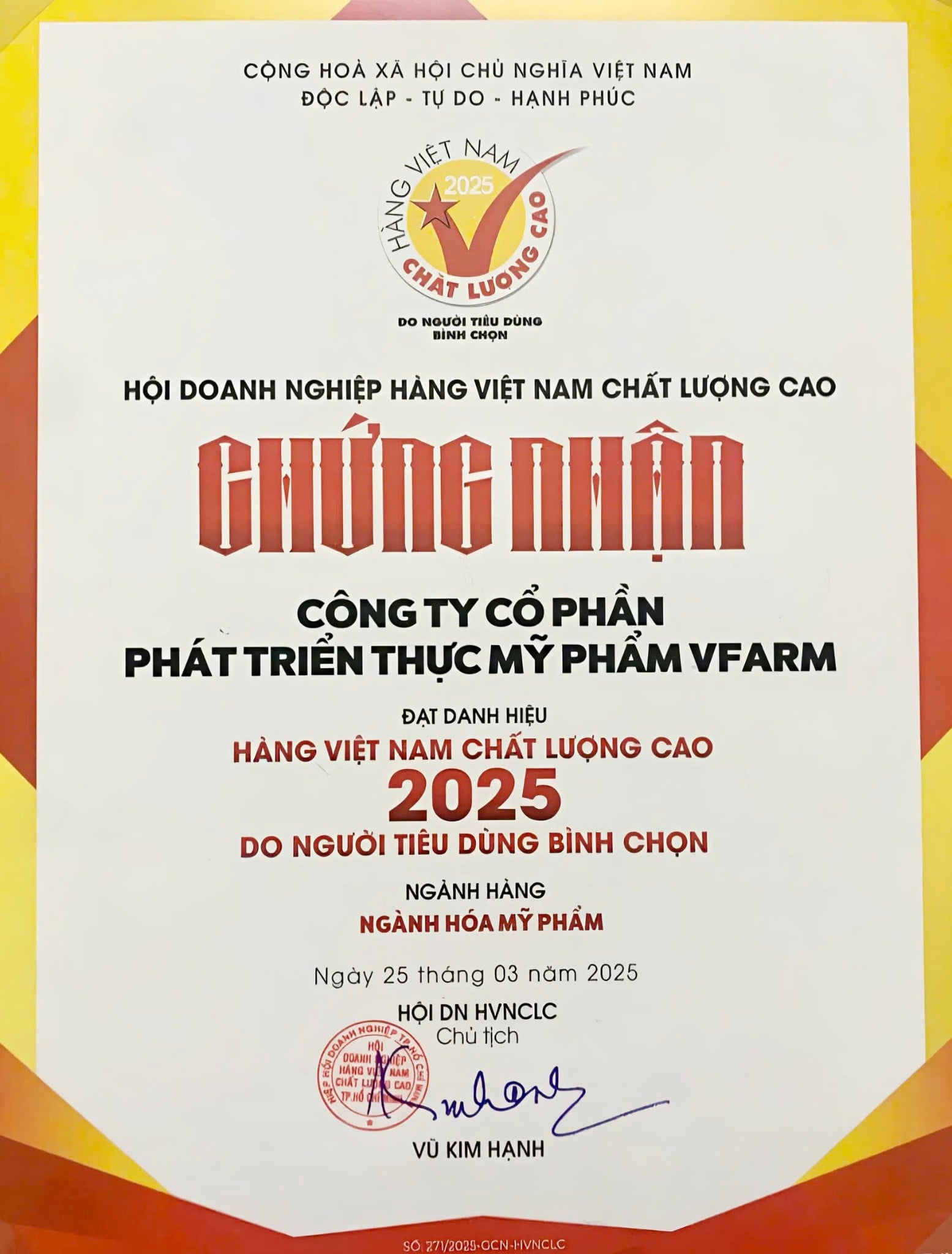 Năm 2025, Công ty Cổ phần phát triển Thực mỹ phẩm VFARM - Thương hiệu Coboté vinh dự đạt danh hiệu "Hàng Việt Nam chất lượng cao do người tiêu dùng bình chọn". Quả ngọt này là sự công nhận mà quý khách hàng thương dành cho thương hiệu. Coboté cam kết mang đến những sản phẩm đảm bảo chất lượng với mong muốn trở thành người bạn đồng hành, cùng quý khách hàng khám phá vẻ đẹp tự nhiên và niềm vui từ những điều nhỏ nhặt, hướng đến lối sống hài hòa, cân bằng thông qua việc chăm sóc bản thân bằng cách tự nhiên.