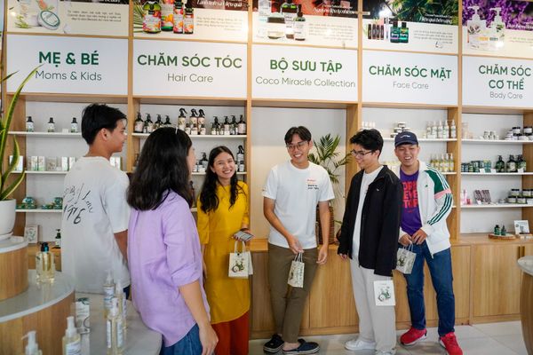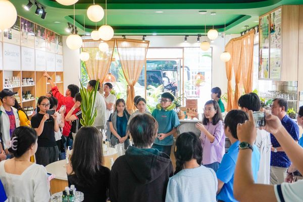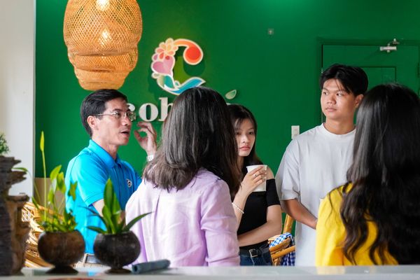 Không khí tại showroom rộn ràng ngay từ những phút đầu. Giảng viên chia sẻ về thông điệp của cuộc thi, chị Hạnh Tâm kể lại câu chuyện khởi nghiệp của mình, và các bạn sinh viên được trực tiếp thử sản phẩm, trải nghiệm tự chặt dừa và hưởng thức thức uống đậm chất Bến Tre tại Coboté. Hai tiếng diễn ra nhanh với nhiều tiếng cười, câu hỏi và sự tương tác nhiệt tình.