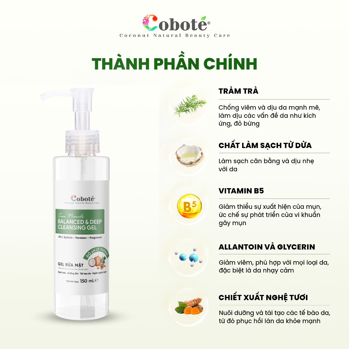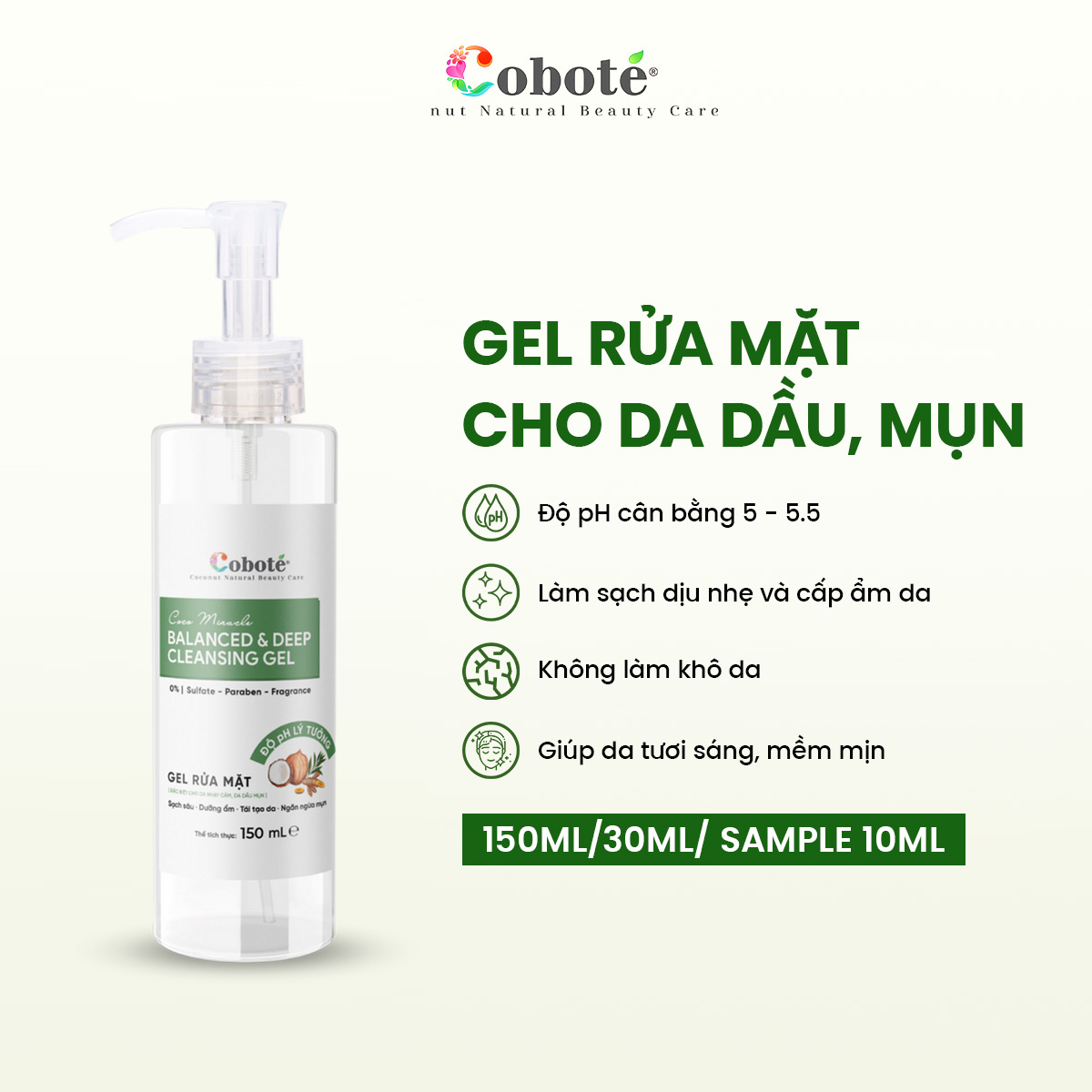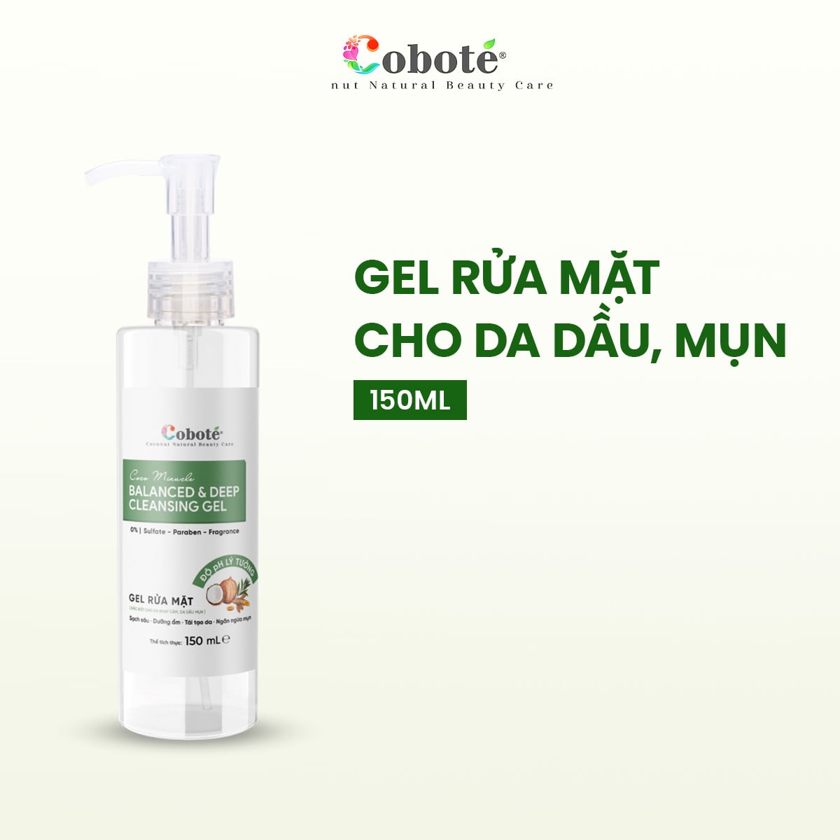 Làm sạch da là bước không thể thiếu trong quy trình chăm sóc da. Việc lựa chọn được sản phẩm phù hợp và an toàn là điều tất yếu. Hiểu được nhu cầu đó, Coboté ra mắt Gel Rửa mặt cho da dầu mụn nhạy cảm - Coco Miracle Balanced and Deep Cleansing Gel. Đây là sản phẩm có chiết xuất từ dừa và các loại thảo mộc tự nhiên giúp nhẹ nhàng làm sạch bụi bẩn, bã nhờn trên da và hỗ trợ duy trì độ ẩm tự nhiên, mang lại cảm giác mềm mịn, thông thoáng sau khi dùng.